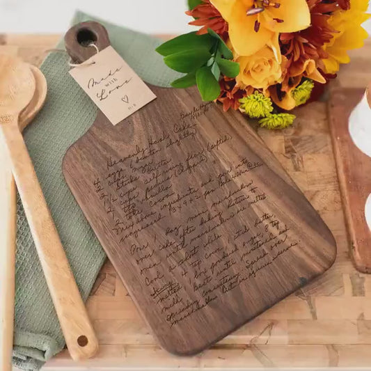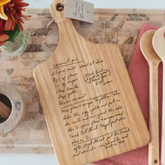 Engraved Acacia Wood Recipe Cutting Board: Handwritten Keepsake