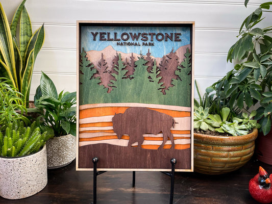 Yellowstone National Park Wood Sign: Layered Stained Laser Cut Art