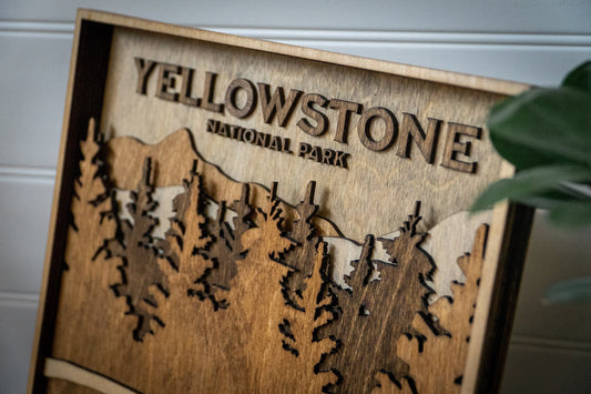 Yellowstone National Park Wood Sign: Laser Cut 3D Layered Art