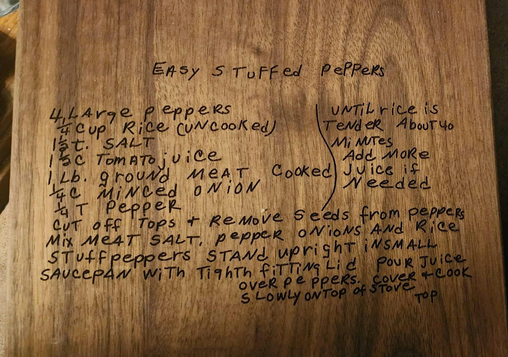 personalized gift, engraved cutting board, custom recipe board, walnut wood gift, handmade kitchenware, unique kitchen decor, wedding gift idea, free shipping offer, recipe keepsake, kitchen gift set, cooking memorabilia, rustic home decor, family recipe board, engraved kitchen art, sentimental gift, wooden serving board, chef gift idea, kitchen wall art, home cooking gift, engraved walnut board